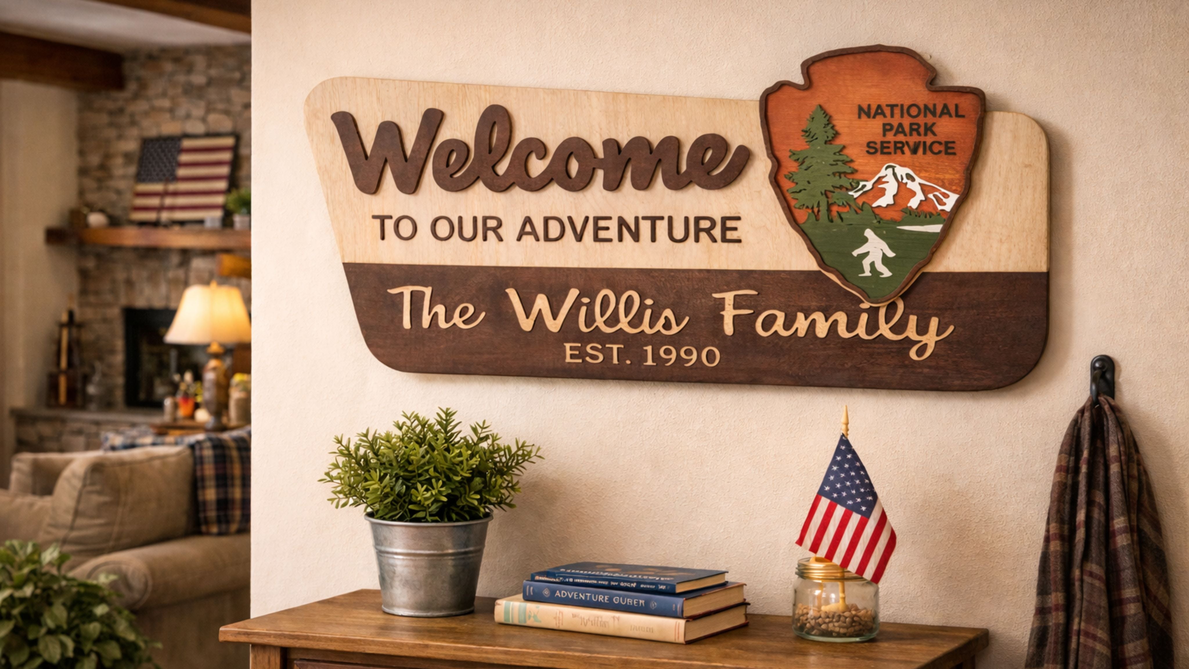3D National Park Service Family Name Welcome Sign (Bison Design)