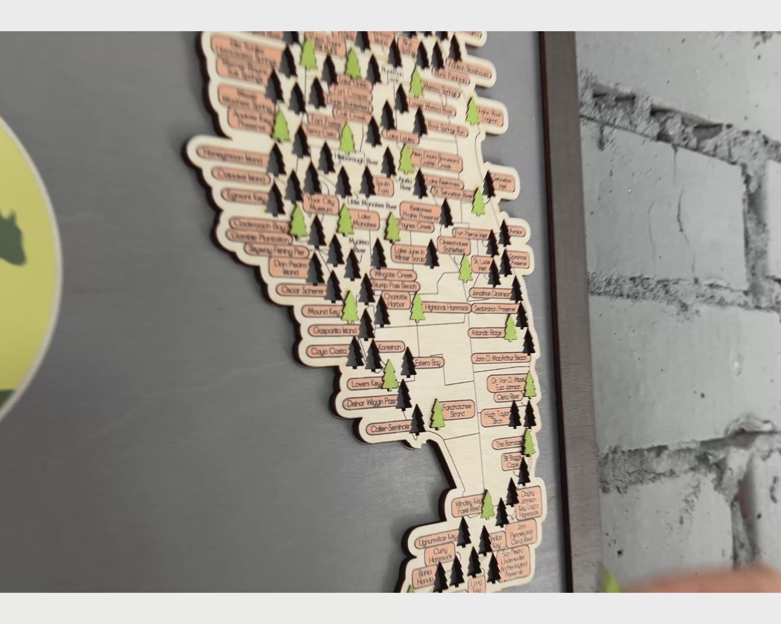 All Florida State Parks. The map comes framed. Stand + LeMap Brand Wool Case + Green Trees + Wall Hook included