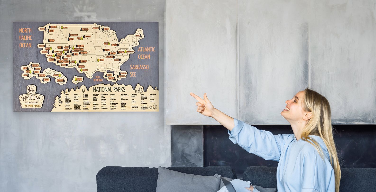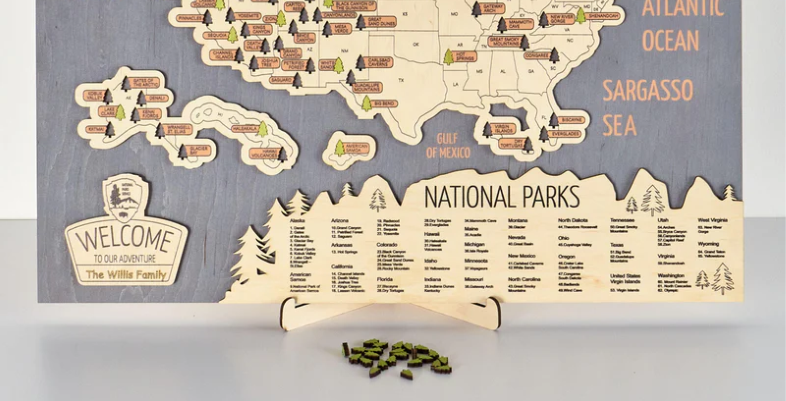 This National Park travel map is more than just wall decor—it’s a reflection of your travels. Handcrafted from high-quality Baltic birch plywood, it features intricate details and customizable markers for each park. Available in various colors, it’s perfect for a tabletop display using the included stand or as a wall-mounted masterpiece. It’s a must-have for adventurers who want to relive and share their travels.