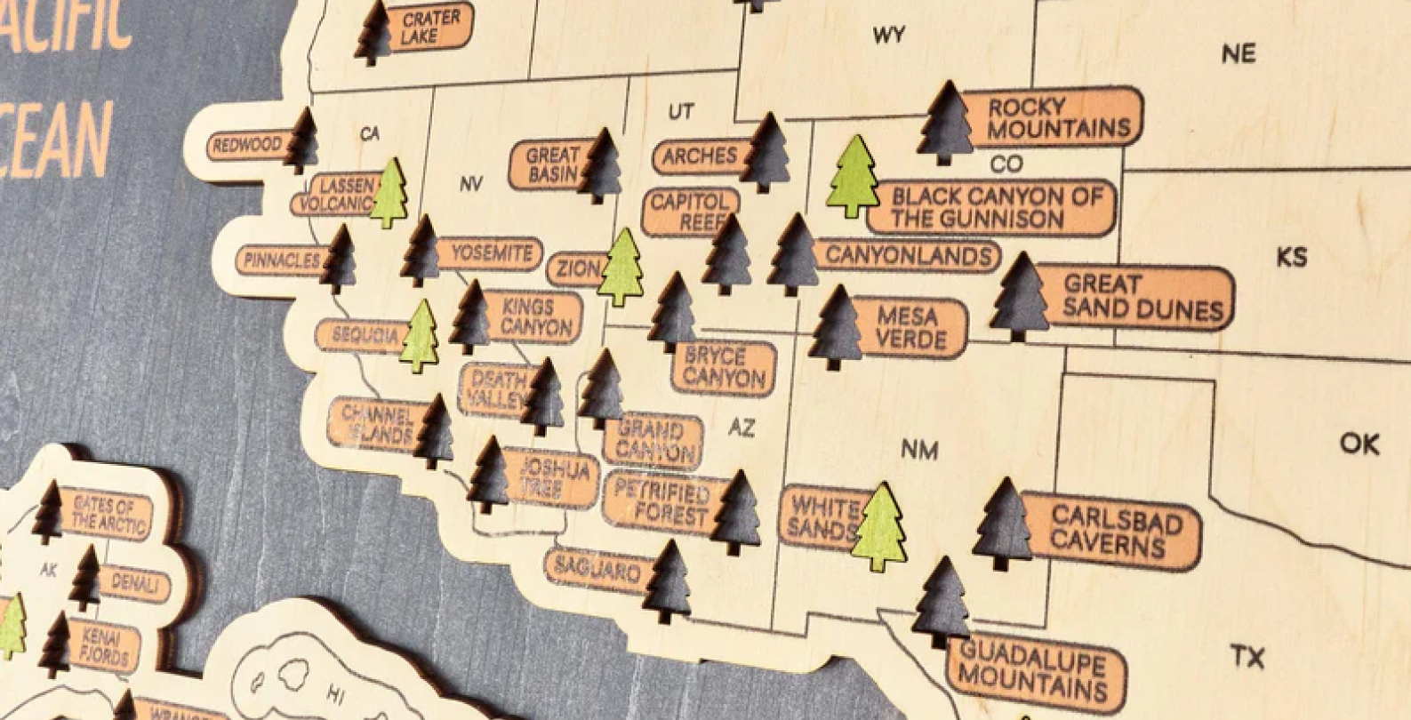 US 3D Wooden National Parks Travel Map With Trees To Record Park Visits (New Blue)