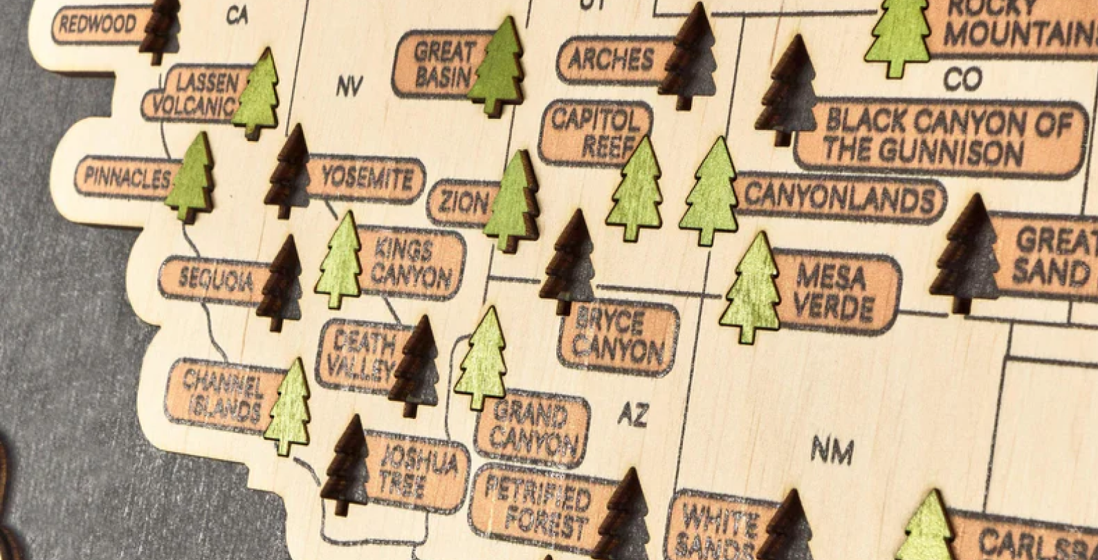 US 3D Wooden National Parks Travel Map With Trees To Record Park Visits (New Dark)