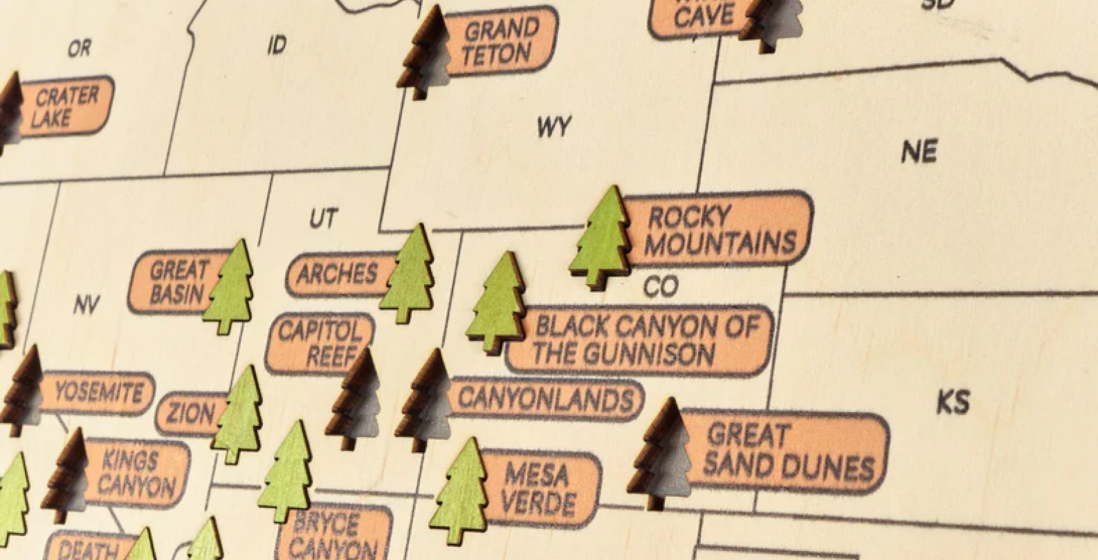 US 3D Wooden National Parks Travel Map With Trees To Record Park Visits (New Light Grey)