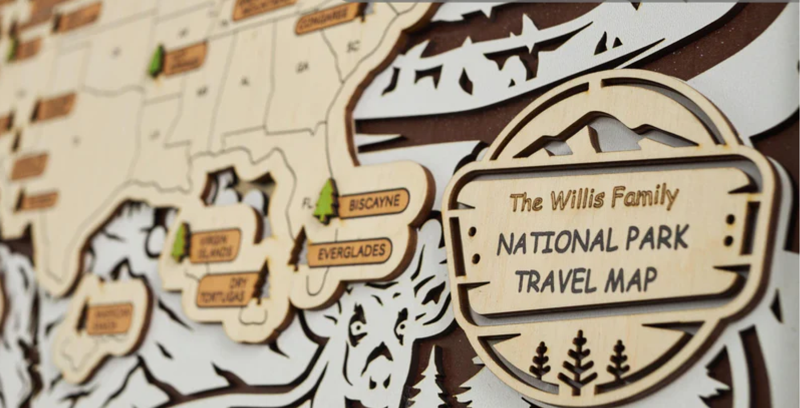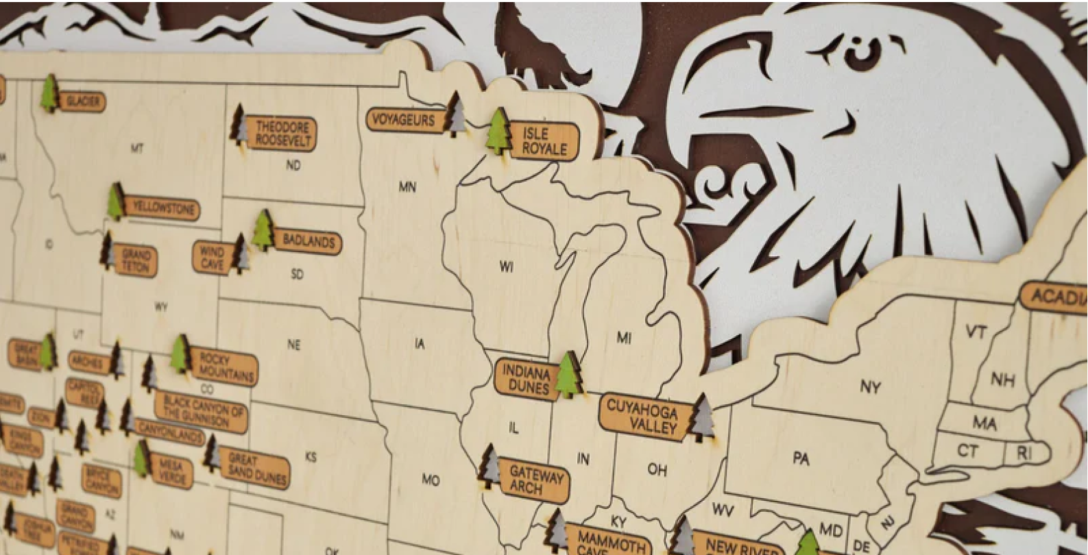 US 3D Wooden National Parks Travel Map With Trees To Record Park Visits (Wildlife Design)
