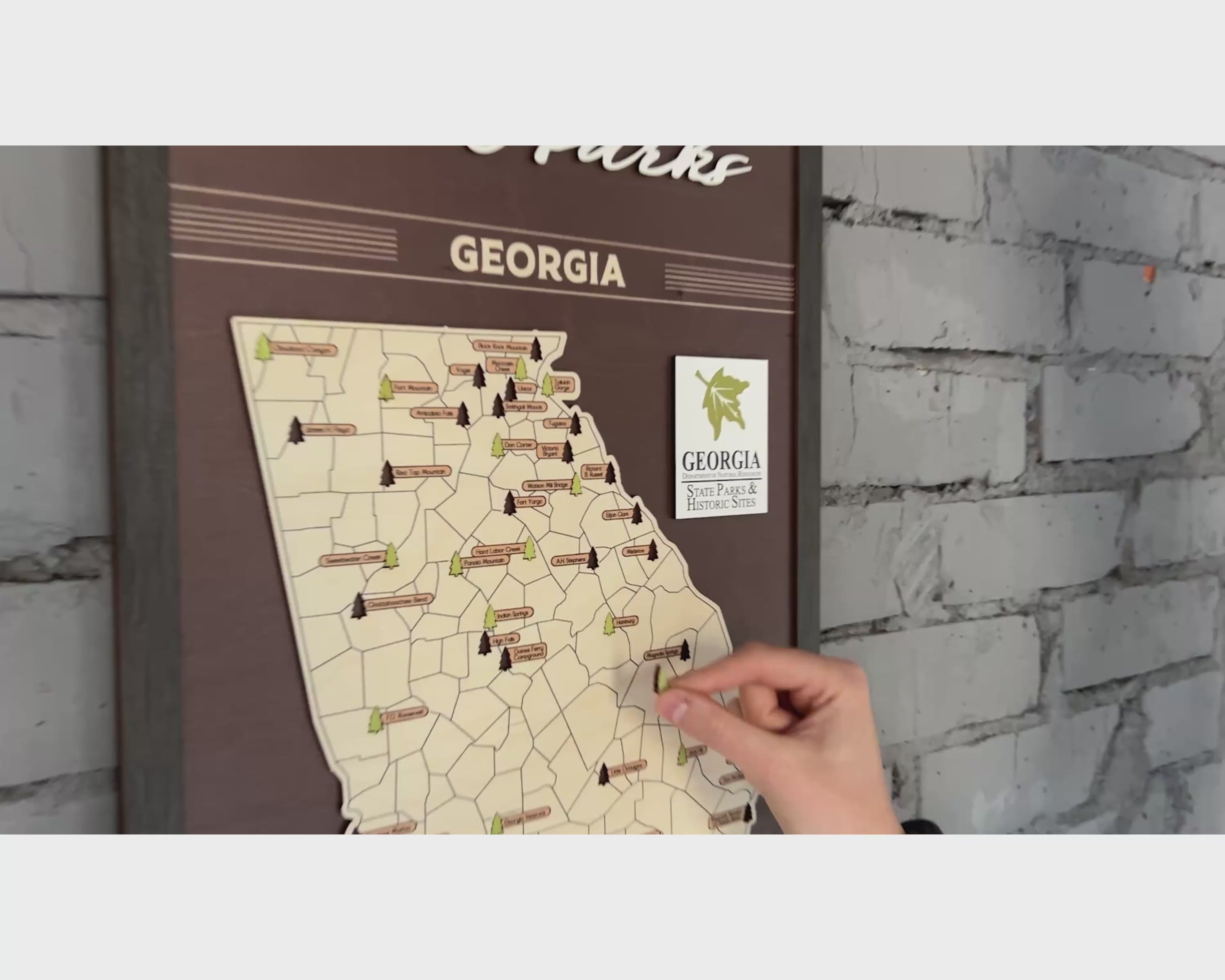 All Georgia State Parks. The map comes framed. Stand + LeMap Brand Wool Case + Green Trees + Wall Hook included