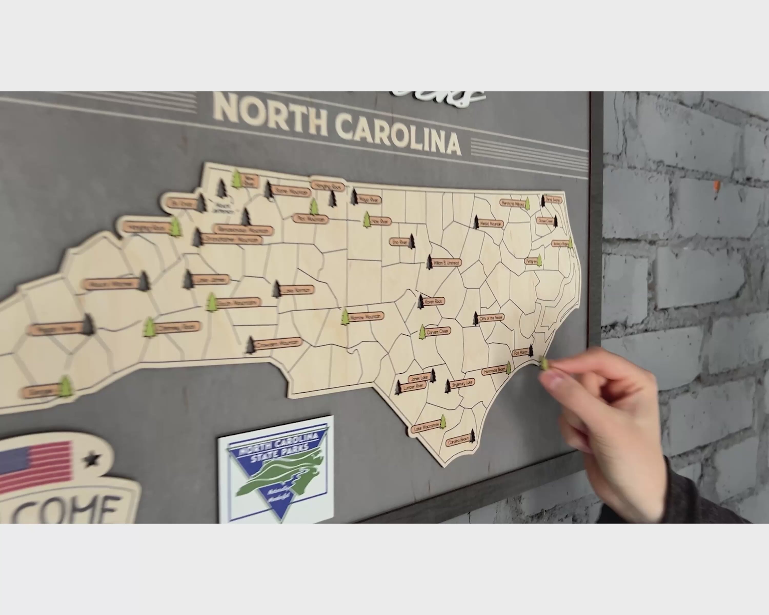 All North Carolina State Parks. The map comes framed. Stand + LeMap Brand Wool Case + Green Trees + Wall Hook included