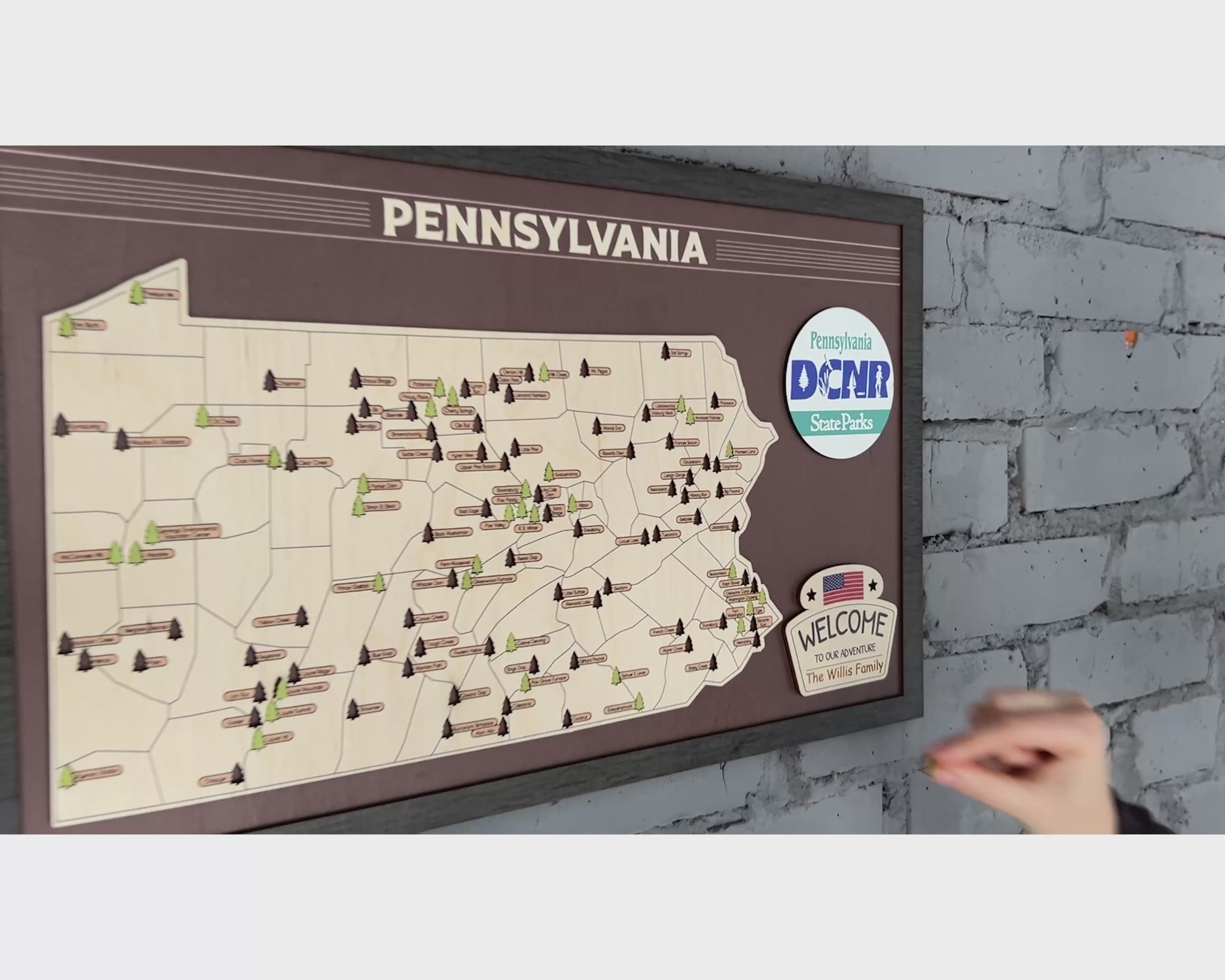 All Pennsylvania State Parks. The map comes framed. Stand + LeMap Brand Wool Case + Green Trees + Wall Hook included